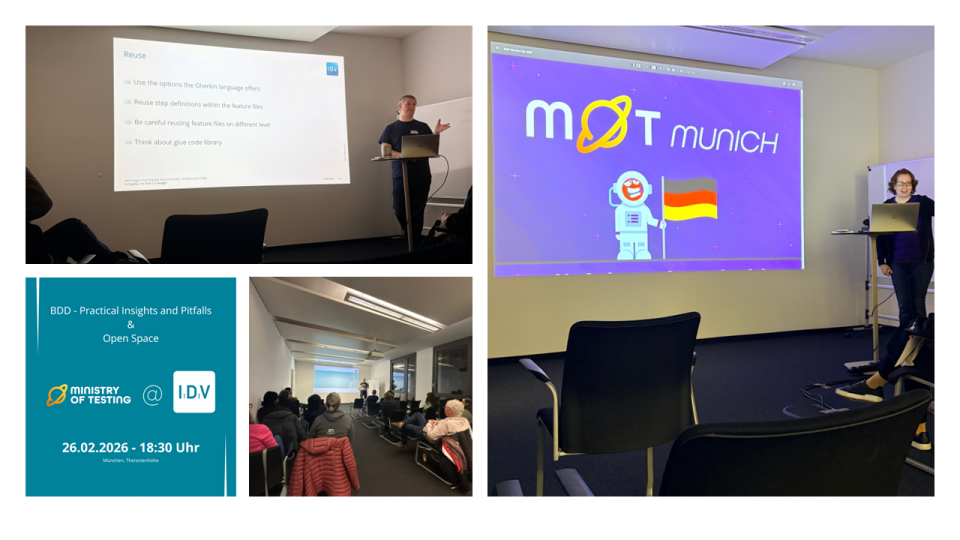 Die IDV GmbH hatte zum ersten Mal das Vergnügen die Ministry of Testing (MoT) Munich Community zu einem inspirierenden Meet Up in ihren Räumlichkeiten zu begrüßen. Testing- und Software-Begeisterte nutzten die Gelegenheit, sich fachlich auszutauschen, neue Impulse mitzunehmen und wertvolle Kontakte zu knüpfen.